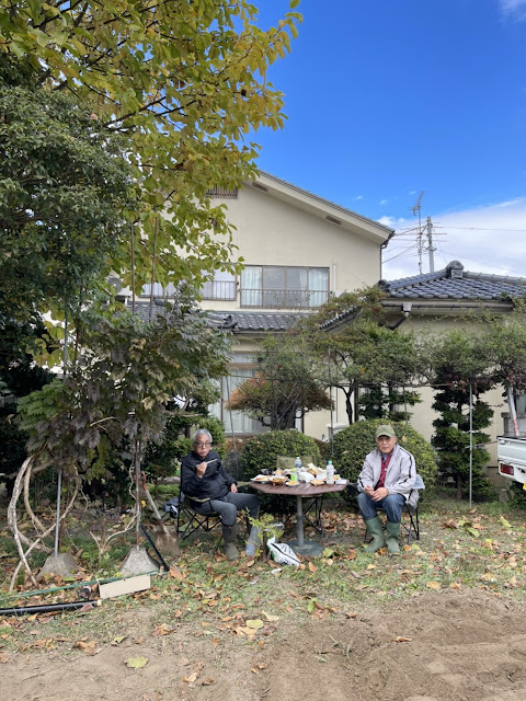 | 作業を終えて奥様手作りのご馳走を戴く |